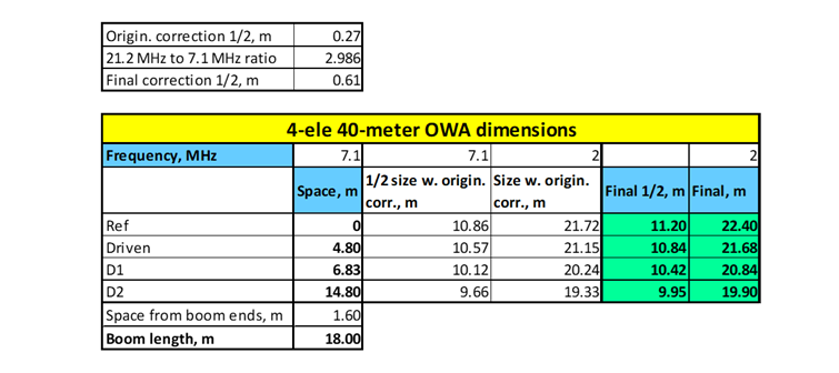 The 40-meter OWA Yagi design is based on the scaled-up 15-meter OWA Yagi: