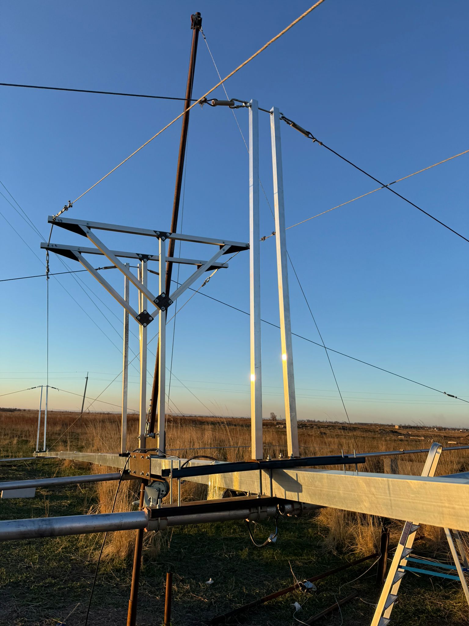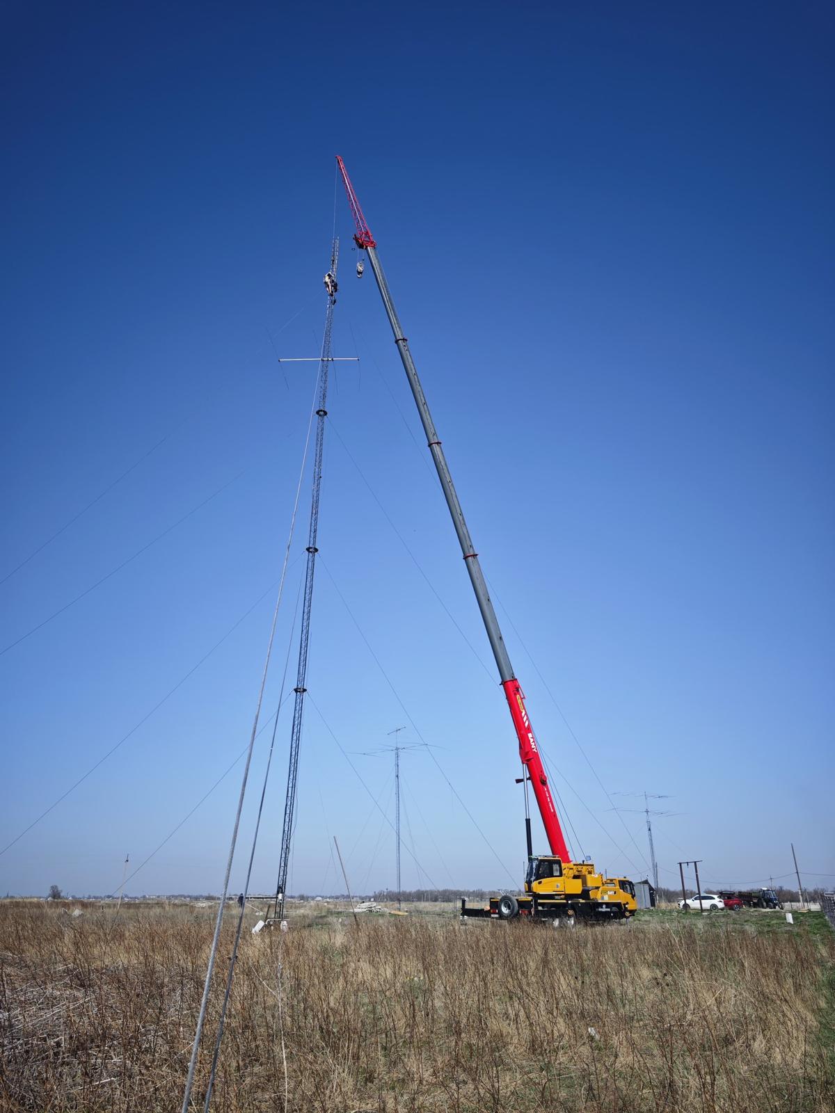- Meanwhile, the 40-meter Yagi must be displaced by the crane from the point where it was assembled and tested to the place from where it will be lifted to the tip of the tower, which about 70 meters away. Not a straightforward task. We thought about carrying to by hand by several people, but the antenna is too heavy and it is too easy to damage it while trying to carry because of its size