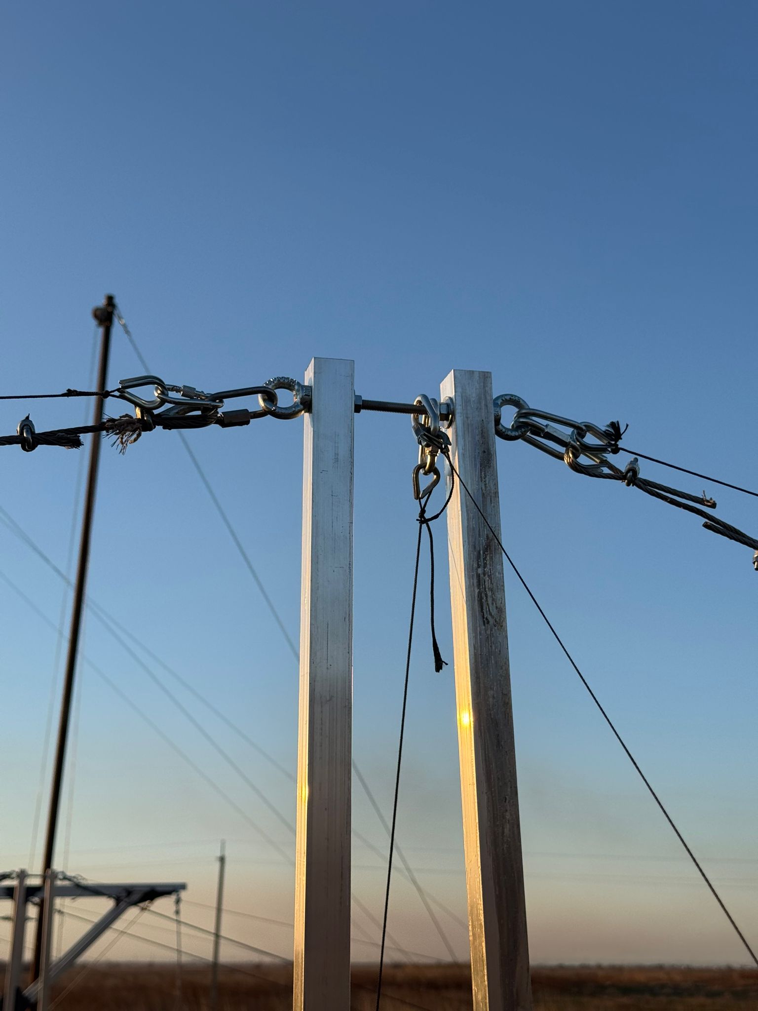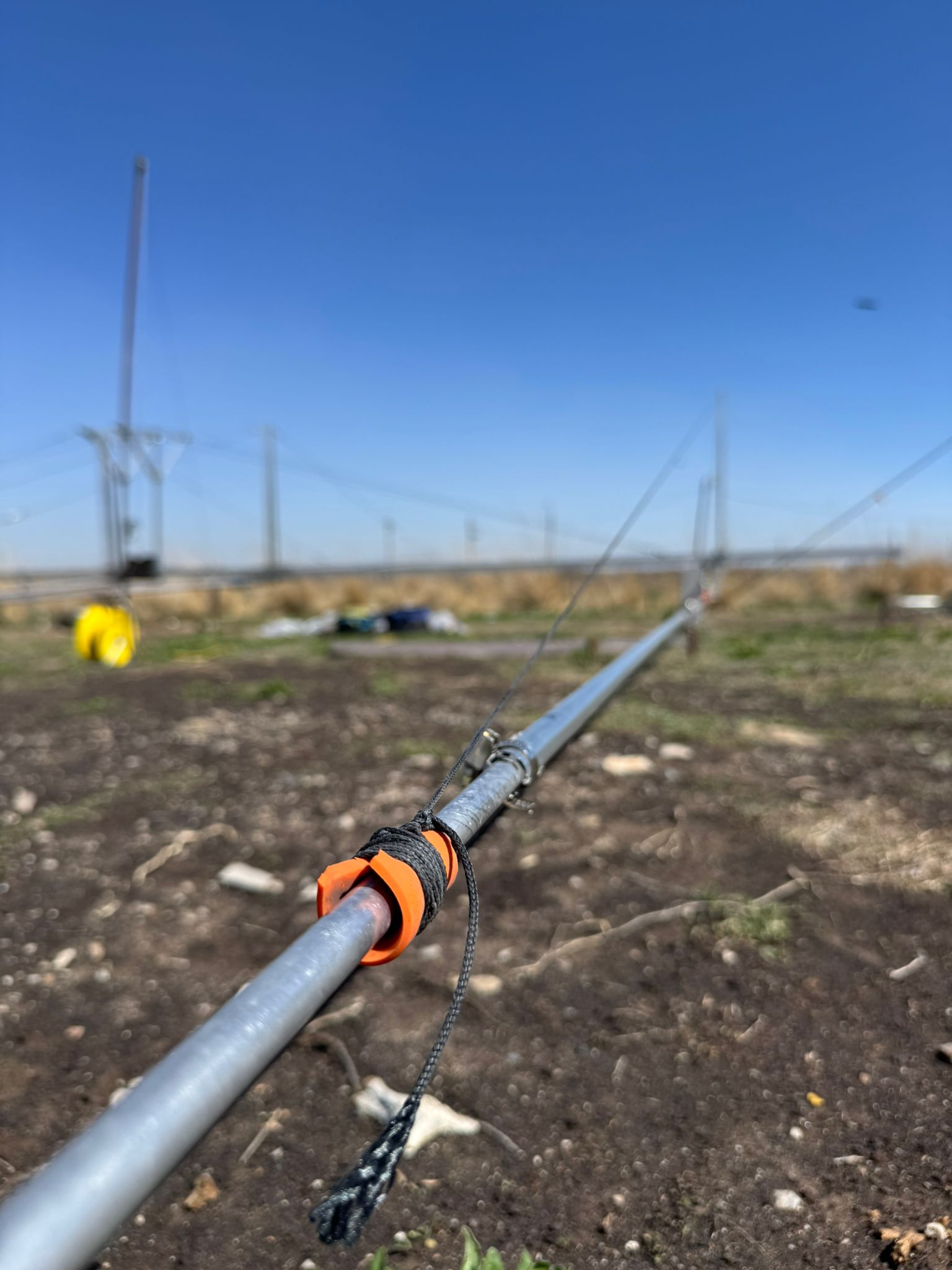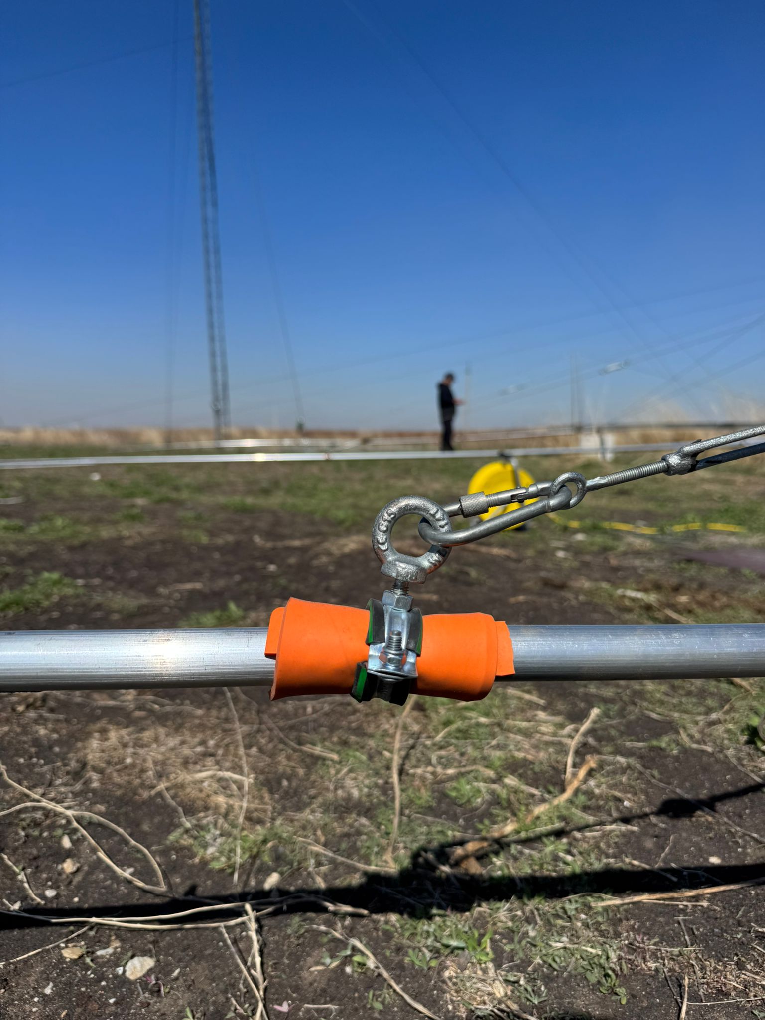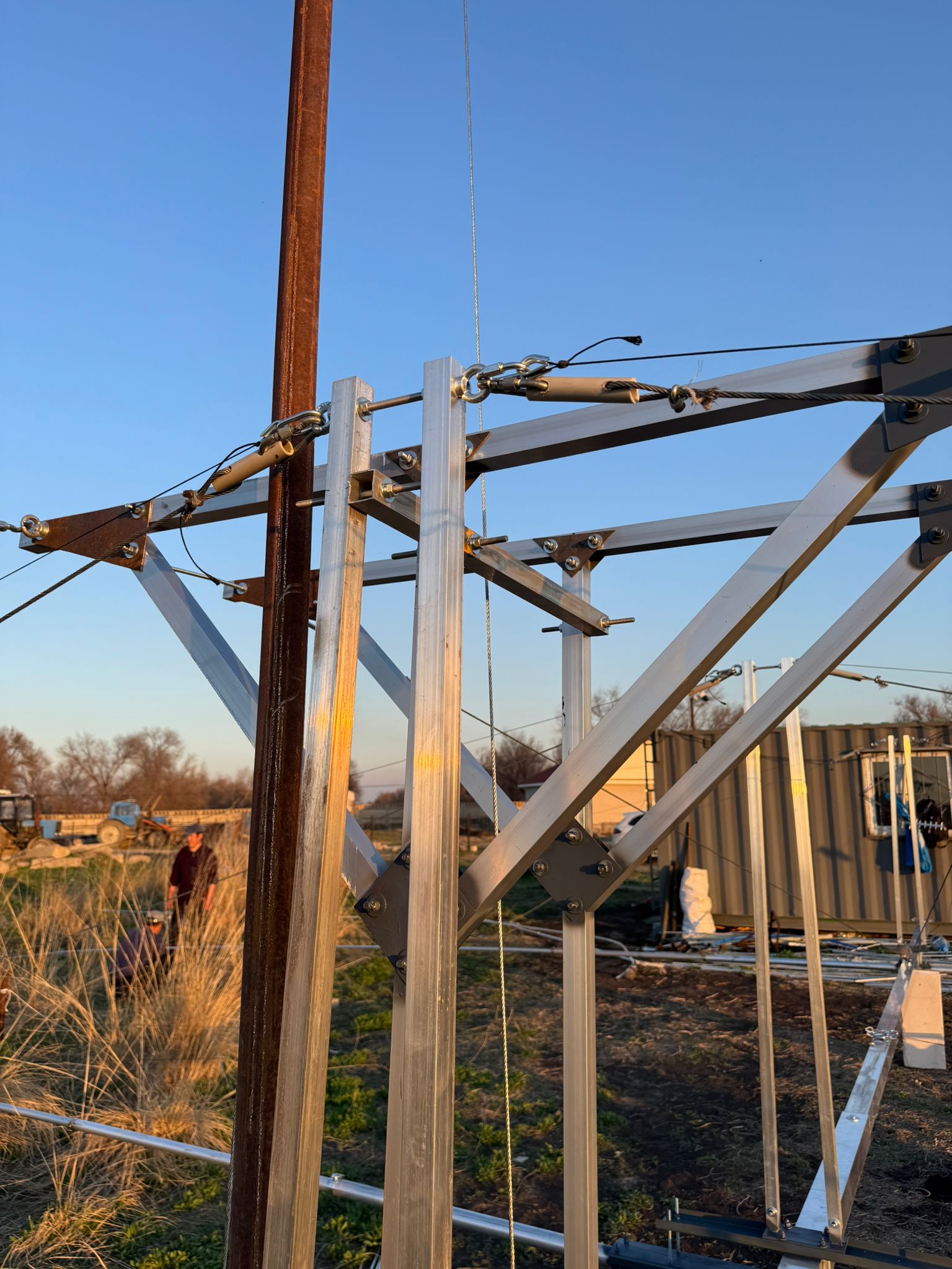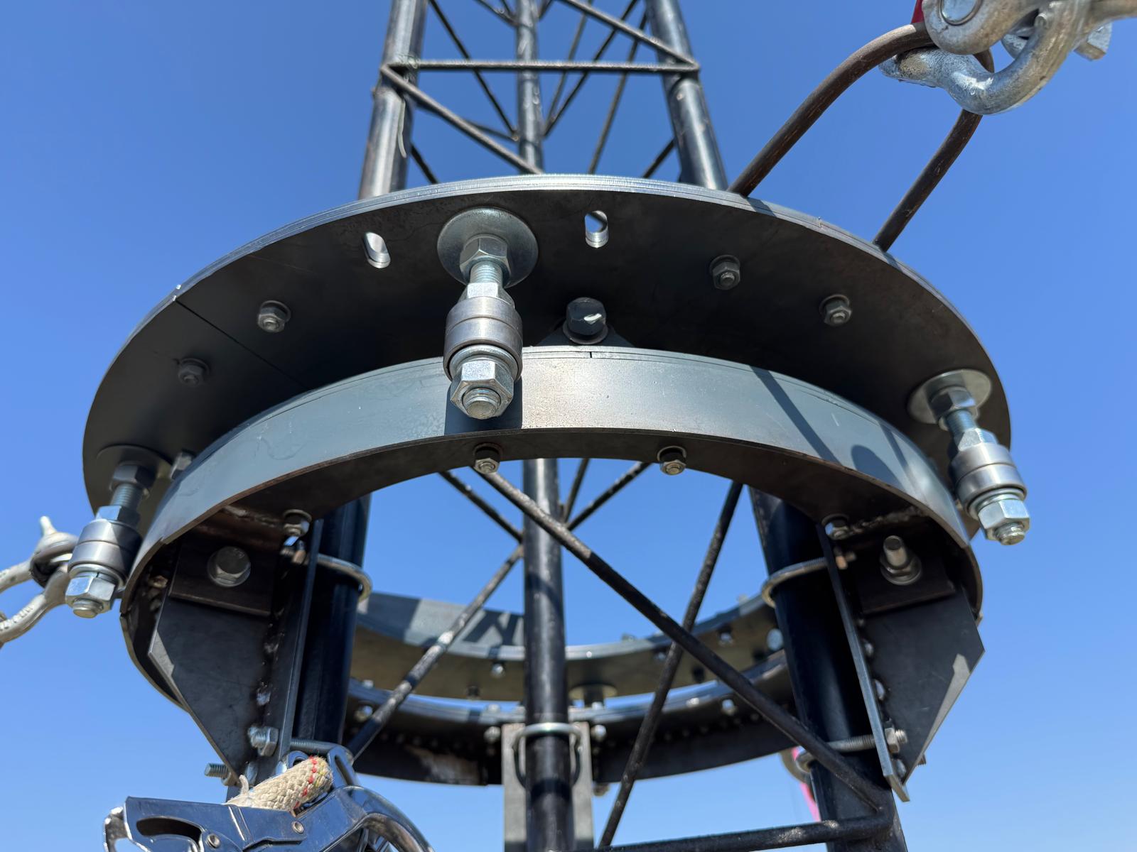 - To switch the guys from the old bearing to the new one. That was a tough call because you are being attached to the tower, which is being held by the very same guys that you plan to switch while on the tower … – the switching moment is highly risky. To minimize the risks: we kept the crane holding the tower from the top – it would keep it in place in case I lose or drop the guy. A winch was used to pull the guy but then I had to press the guy with one of my leg, while balancing the remaining leg … – and everything on the 38-meter height …Â