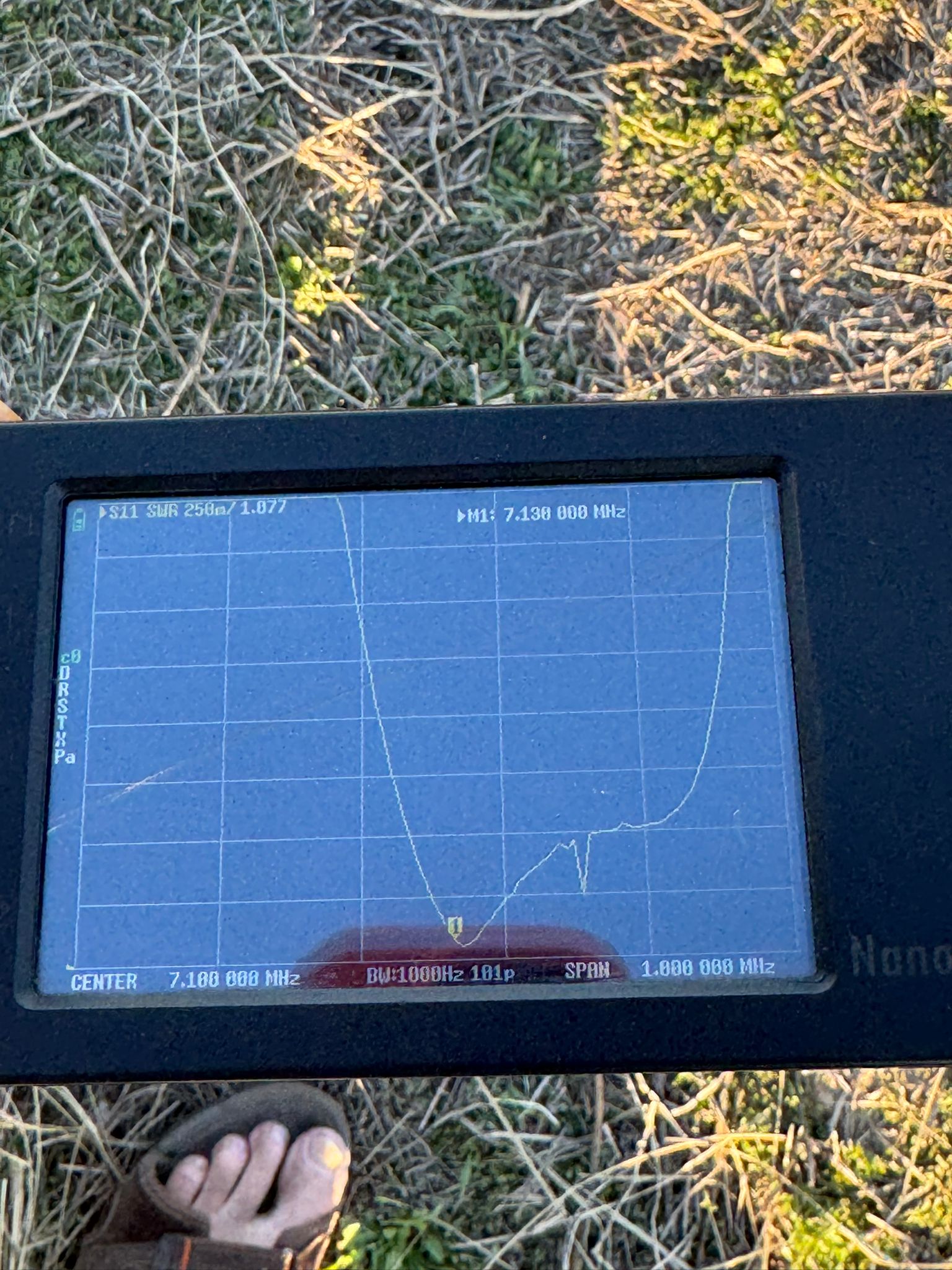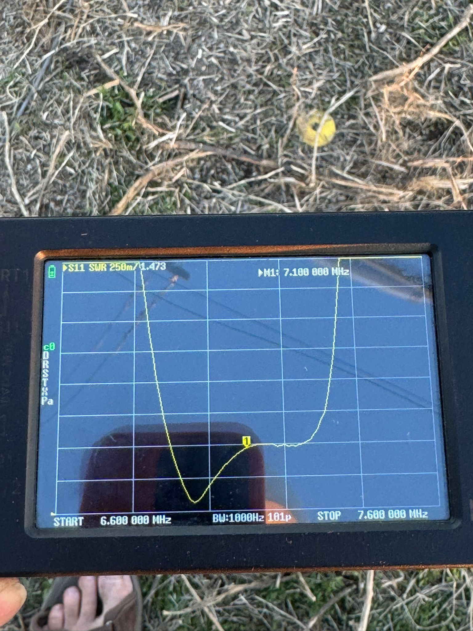 Final SWR with antenna 5 meters above the ground. It is expected to shift up substantially when lifted to the final height of 40 meters.