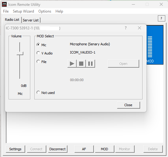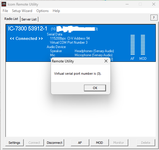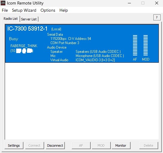 Icom RS-BA1 Remote Control settings are somewhat confusing. Below are screenshots of the working settings.
