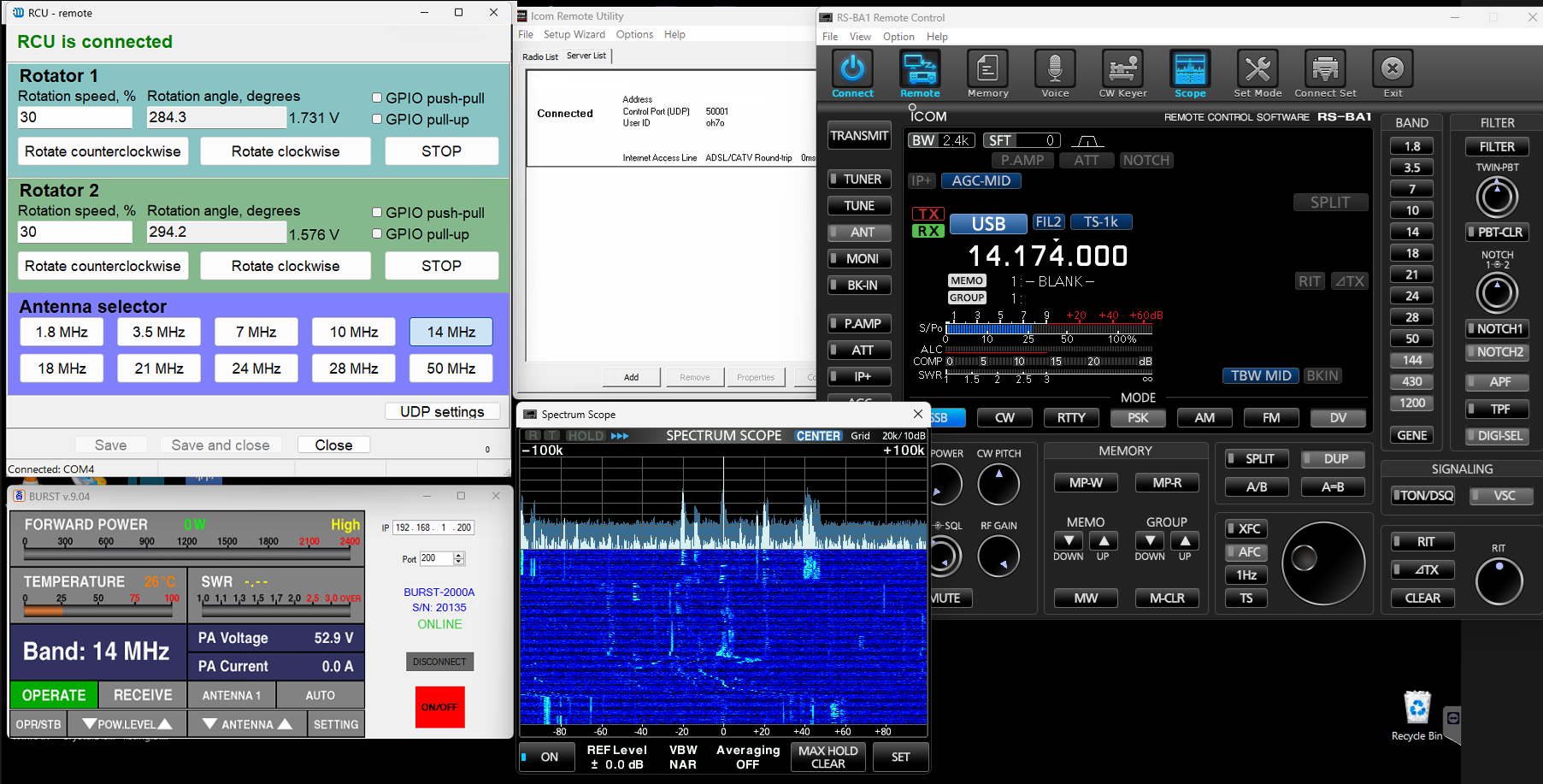 This post will focus solely on remote control settings, including Icom RS1-BA, Marvelmind RCU, and other related hints. All antenna-related topics will be separate posts.