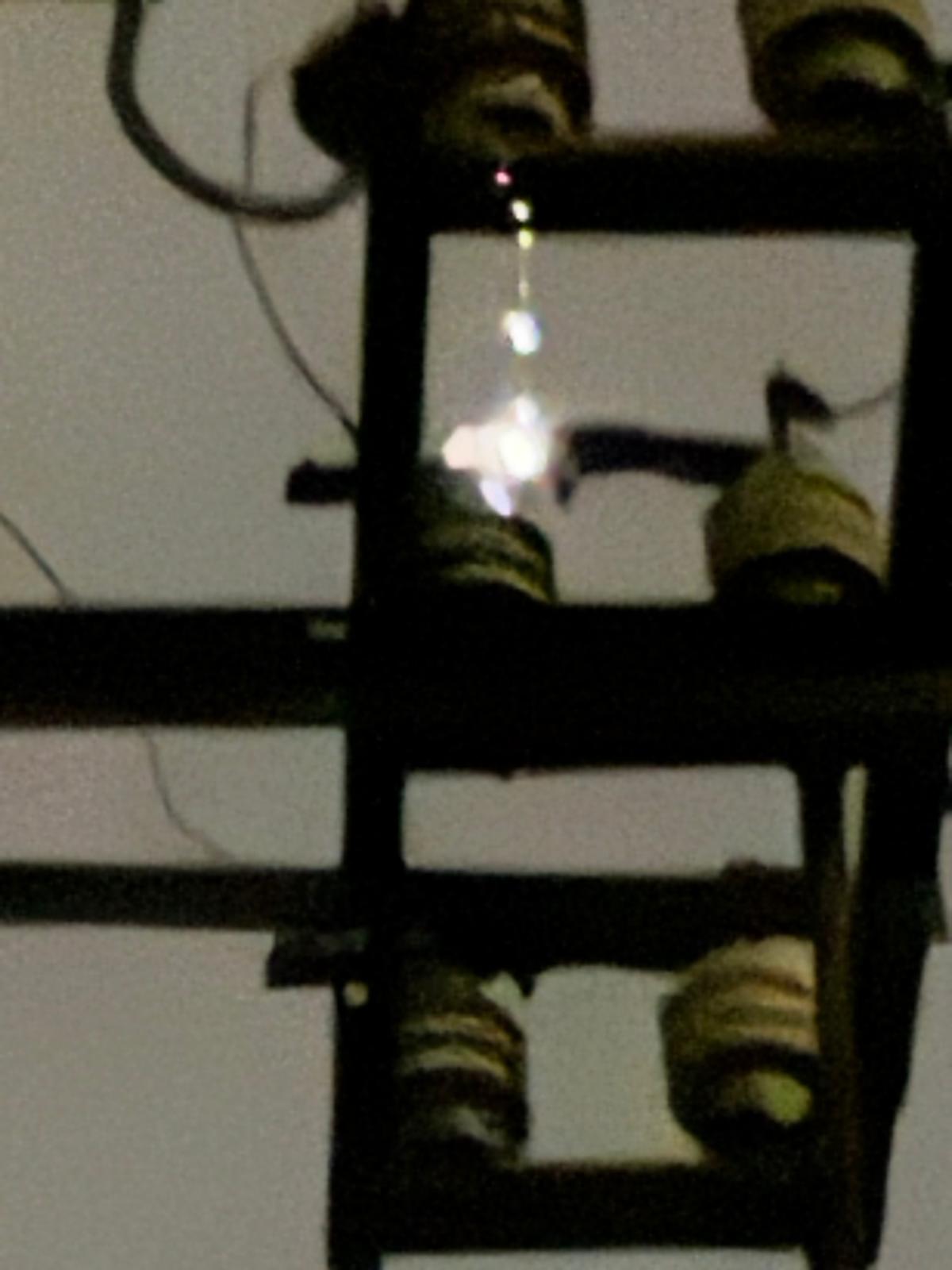 The transformer broke. I believe, it is a three phase 10 kV to 220V transformer, but I I am not sure. What I am sure, that one of the phases gives constant sparks, which are bright at and audible, and produces S9+20 noise instead of typical S5-7 on 40m. The same level of noise on 80m and 160m but the other noise (atmosphere + human-produced) is S7-8 and S8-9 respectively.